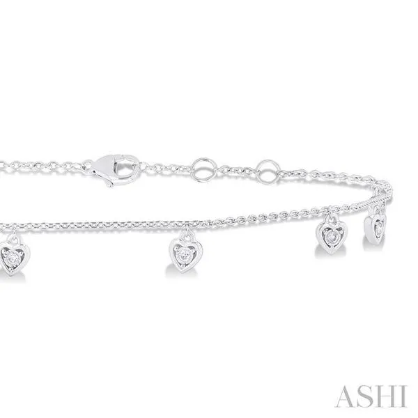 1/10 Ctw Heart Charm Round Cut Diamond Station Anklet in 10K White Gold Image 2 Adler's Diamonds Saint Louis, MO