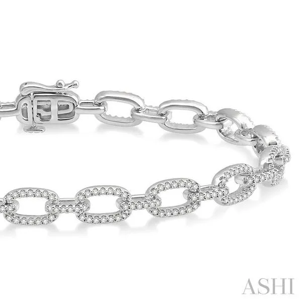 1 1/2 Ctw Round Cut Diamond Encrusted Link Paperclip Chain Bracelet in 14K White Gold Image 4 Adler's Diamonds Saint Louis, MO
