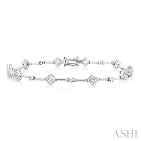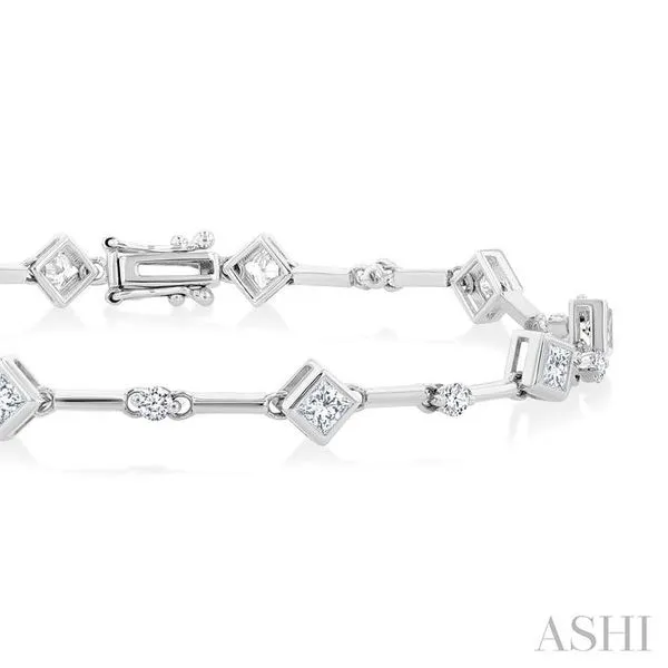 1 1/3 Ctw Bezel Set Princess and Round Cut Diamond Bar Link Bracelet in 14K White Gold Image 2 Adler's Diamonds Saint Louis, MO