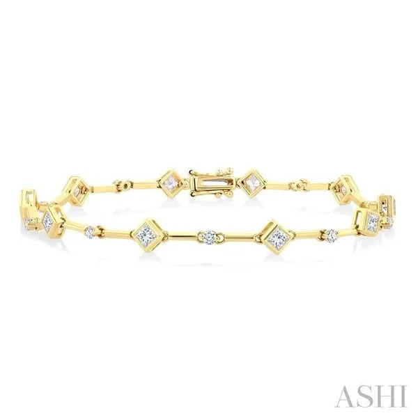 1 1/3 Ctw Bezel Set Princess and Round Cut Diamond Bar Link Bracelet in 14K Yellow Gold Image 2 Adler's Diamonds Saint Louis, MO
