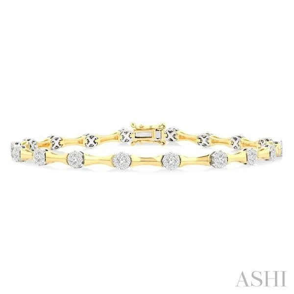 1 1/4 Ctw Lovebright Circular Mount & Bamboo Link Round Cut Diamond Fashion Bracelet in 14K Yellow and White Gold