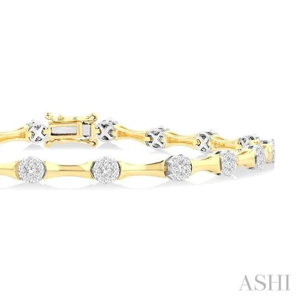 3. 1 1/4 Ctw Lovebright Circular Mount & Bamboo Link Round Cut Diamond Fashion Bracelet in 14K Yellow and White Gold