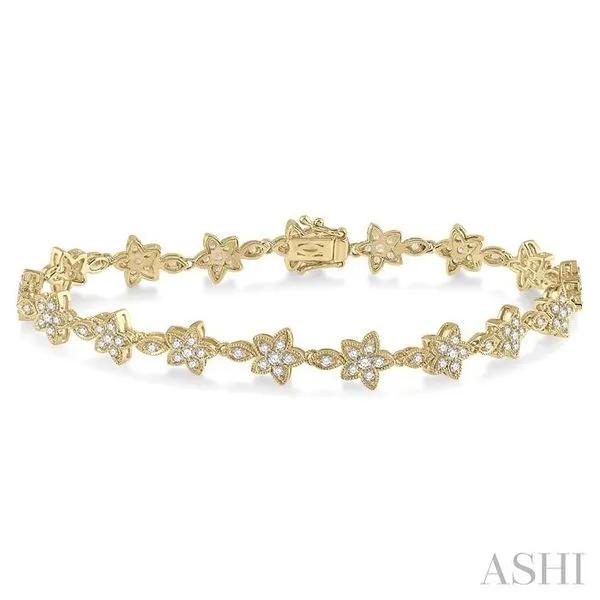 1 1/5 Ctw Flower and Marquise Link Diamond Bracelet in 14K Yellow Gold Image 2 Adler's Diamonds Saint Louis, MO