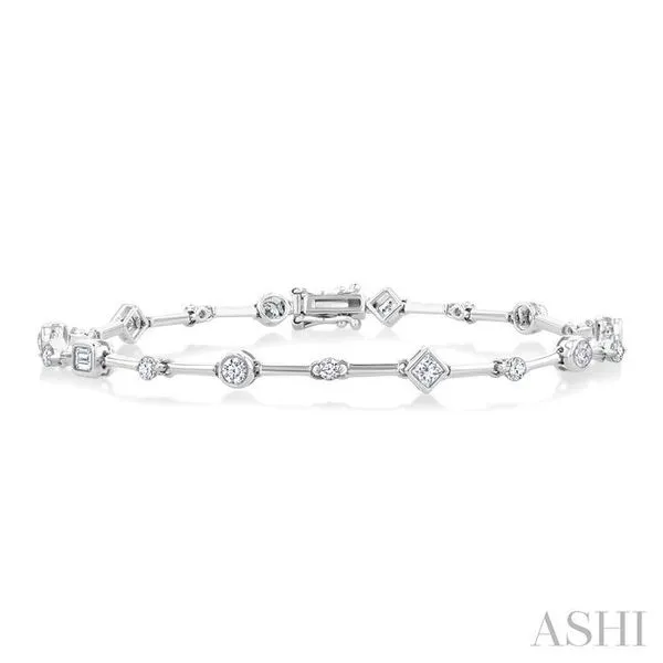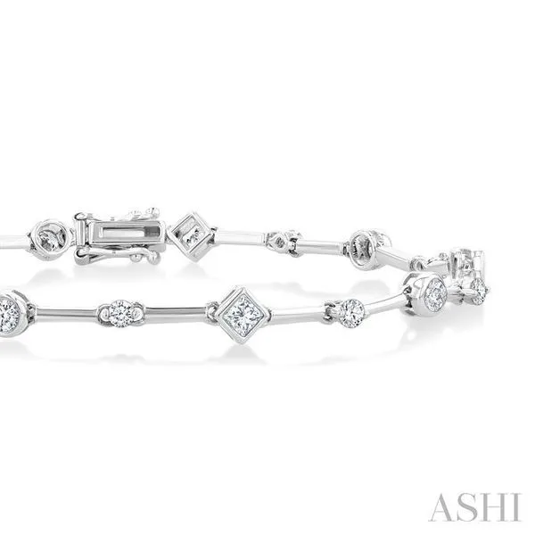 1 1/5 Ctw Mixed Diamond Cut Bar Link Bracelet in 14K White Gold Image 2 Adler's Diamonds Saint Louis, MO