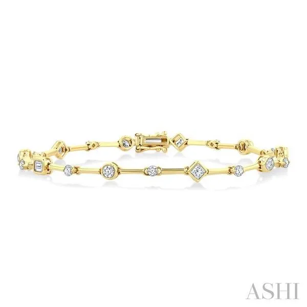 1 1/5 Ctw Mixed Diamond Cut Bar Link Bracelet in 14K Yellow Gold Image 2 Adler's Diamonds Saint Louis, MO