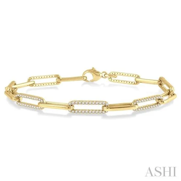1 Ctw Round Cut Diamond Paperclip Bracelet in 10K Yellow Gold