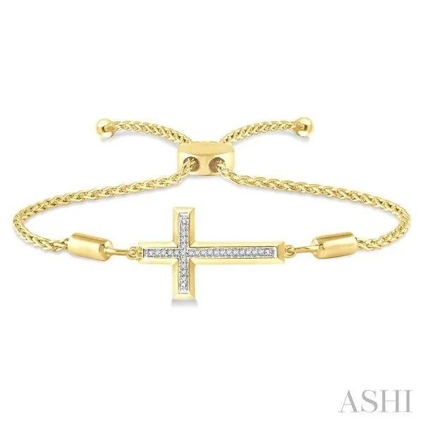 1/20 Ctw Cross Charm Round Cut Diamond Lariat Bracelet in Yellow Gold Vermeil Adler's Diamonds Saint Louis, MO