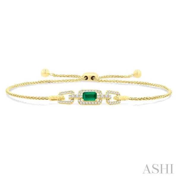 1/4 Ctw 5X3MM Emerald and Round Cut Diamond Precious Rectangular Open Link Lariat Bracelet in 14K Yellow Gold Adler's Diamonds Saint Louis, MO