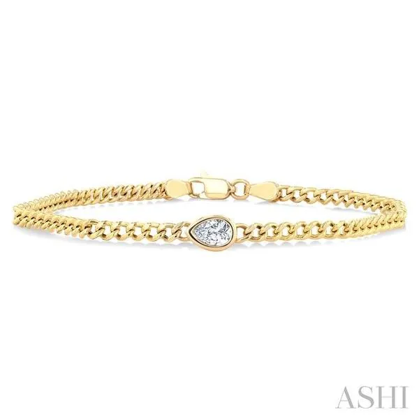 1/4 Ctw Pear Cut Diamond Curb Link Bracelet in 14K Yellow Gold