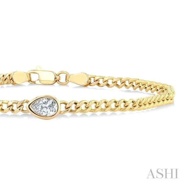 3. 1/4 Ctw Pear Cut Diamond Curb Link Bracelet in 14K Yellow Gold