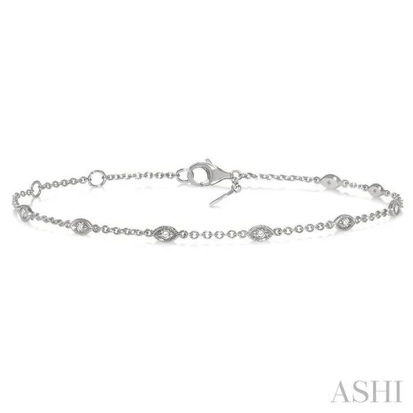 1/6 Ctw Marquise Shape Mount Round Cut Diamond Station Bracelet in 10K White Gold Image 3 Adler's Diamonds Saint Louis, MO
