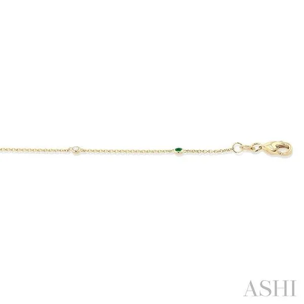1.75 MM Emerald and 1/20 Ctw Round Cut Diamond Precious Station Bracelet in 14K Yellow Gold Image 2 Adler's Diamonds Saint Louis, MO
