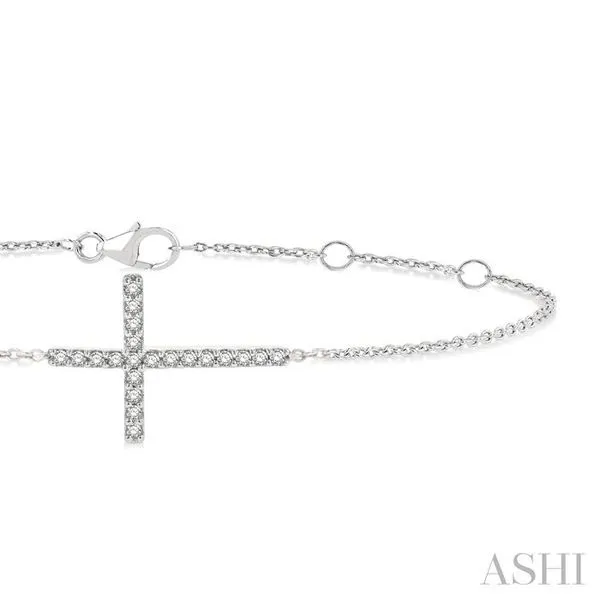 1/8 Ctw Petite Reclined Cross Round Cut Diamond Fashion Bracelet in 10K White Gold Image 2 Adler's Diamonds Saint Louis, MO