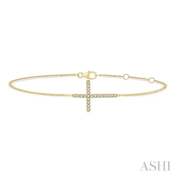 1/8 Ctw Petite Reclined Cross Round Cut Diamond Fashion Bracelet in 10K Yellow Gold Adler's Diamonds Saint Louis, MO