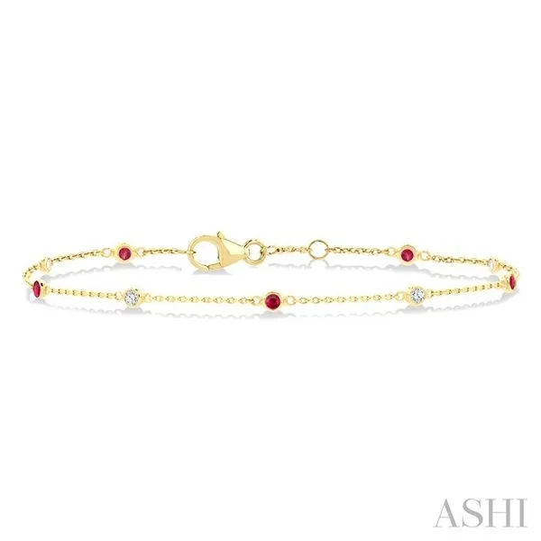 1.8 MM Ruby and 1/10 Ctw Bezel Set Round Cut Diamond Precious Gemstone Station Bracelet in 14K Yellow Gold Image 2 Adler's Diamonds Saint Louis, MO