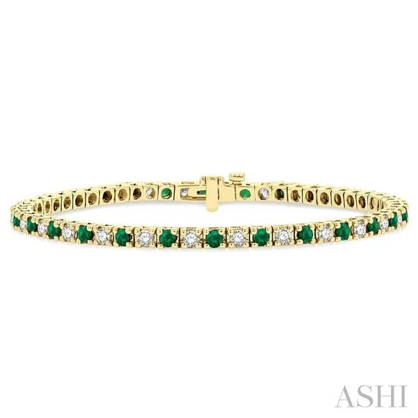 2.5 MM Emerald and 1 1/2 Ctw Round Cut Diamond Square Box Link Precious Tennis Bracelet in 14K Yellow Gold Image 2 Adler's Diamonds Saint Louis, MO