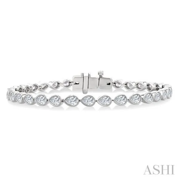 3 1/3 Ctw East-West Bezel Set Pear Cut Diamond Tennis Bracelet in 14K White Gold Image 2 Adler's Diamonds Saint Louis, MO