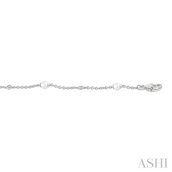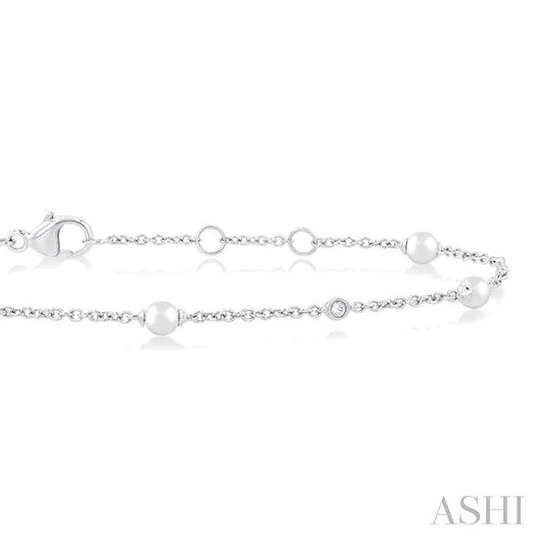3 MM Round Shape Cultured Pearl and 1/20 Ctw Round Cut Diamond Fashion Station Bracelet in 14K White Gold Image 3 Adler's Diamonds Saint Louis, MO
