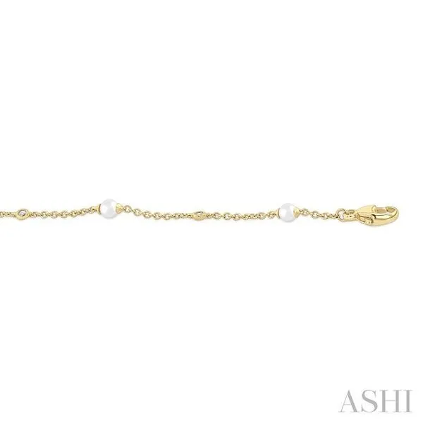 3 MM Round Shape Cultured Pearl and 1/20 Ctw Round Cut Diamond Fashion Station Bracelet in 14K Yellow Gold Image 2 Adler's Diamonds Saint Louis, MO