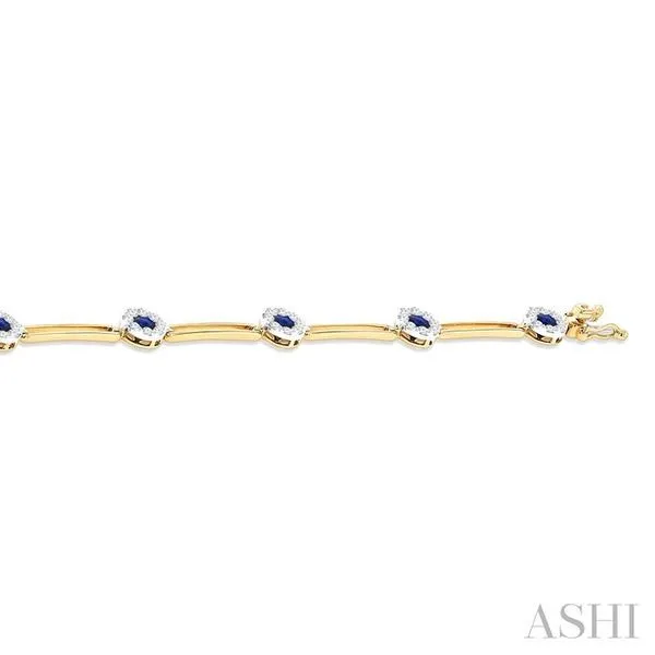 3 MM Sapphire and 1 1/5 Ctw Round Cut Diamond Paperclip Lovebright Precious Bracelet in 14K Yellow and White Gold Image 2 Adler's Diamonds Saint Louis, MO