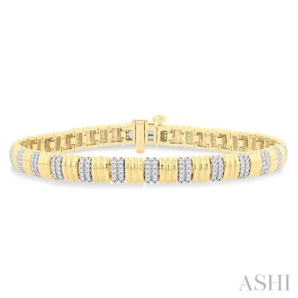 3. 3/4 Ctw Ribbed Round Cut Diamond Fashion Bracelet in 10K Yellow Gold