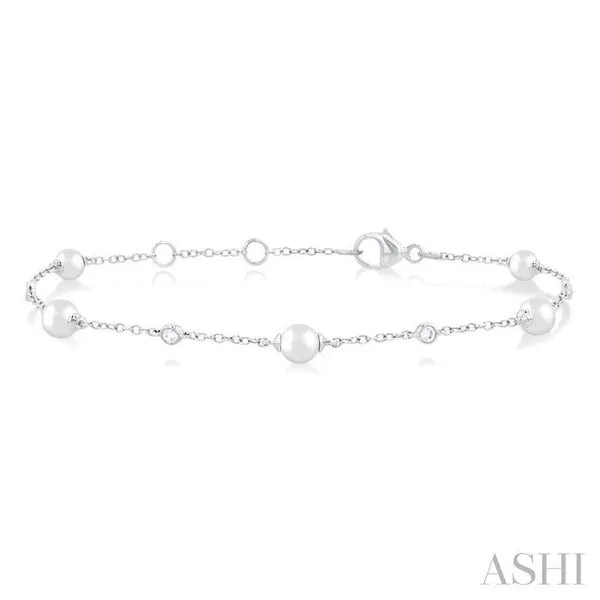 4 MM Round Shape Cultured Pearl and 1/20 Ctw Round Cut Diamond Fashion Station Bracelet in 14K White Gold Image 2 Adler's Diamonds Saint Louis, MO
