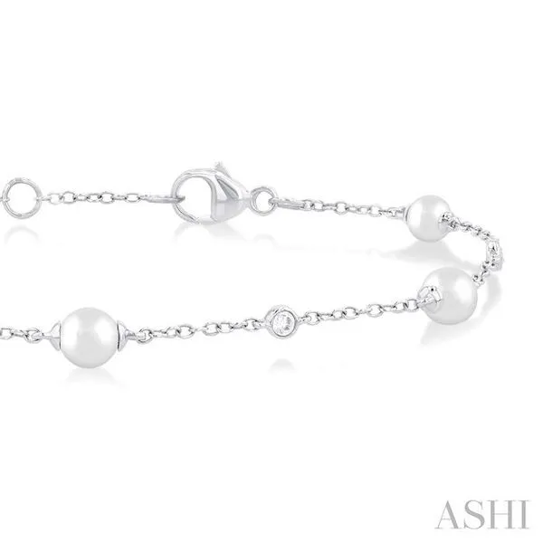4 MM Round Shape Cultured Pearl and 1/20 Ctw Round Cut Diamond Fashion Station Bracelet in 14K White Gold Image 3 Adler's Diamonds Saint Louis, MO