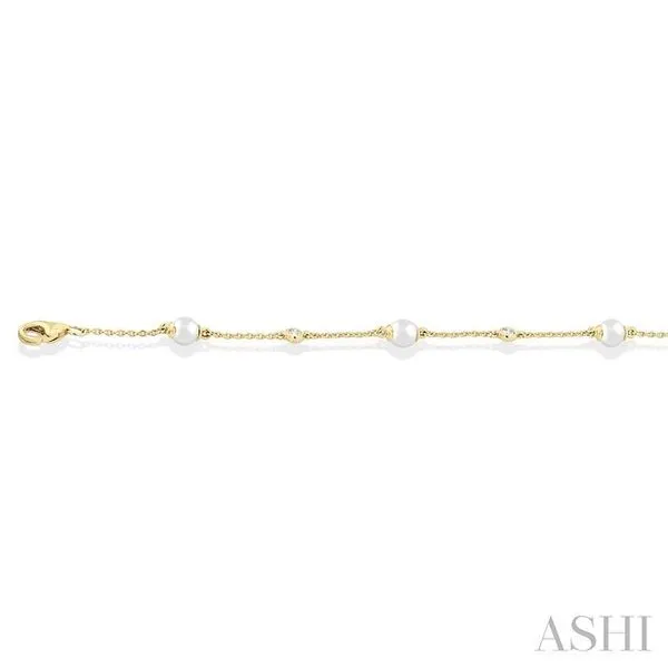 4 MM Round Shape Cultured Pearl and 1/20 Ctw Round Cut Diamond Fashion Station Bracelet in 14K Yellow Gold Image 2 Adler's Diamonds Saint Louis, MO