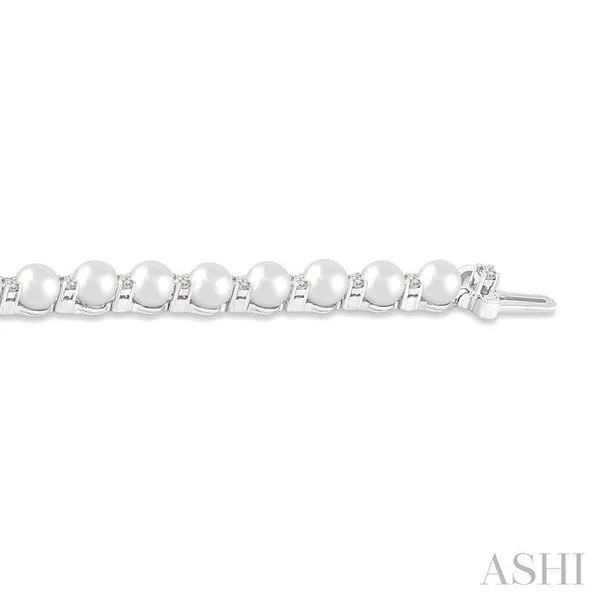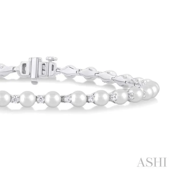 4 MM Round Shape Cultured Pearl and 3/4 Ctw Round Cut Diamond Tennis Bracelet in 14K White Gold Image 4 Adler's Diamonds Saint Louis, MO