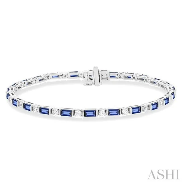 4X2 MM Baguette Cut Sapphire and 1 1/10 Ctw Art Deco Round Cut Diamond Precious Bracelet in 14K White Gold Adler's Diamonds Saint Louis, MO