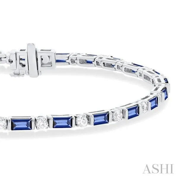 4X2 MM Baguette Cut Sapphire and 1 1/10 Ctw Art Deco Round Cut Diamond Precious Bracelet in 14K White Gold Image 2 Adler's Diamonds Saint Louis, MO
