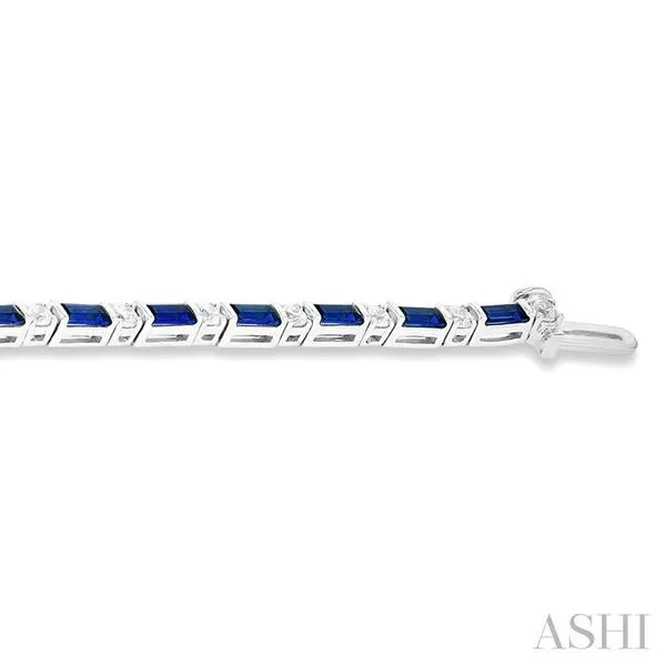 4X2 MM Baguette Cut Sapphire and 1 1/10 Ctw Art Deco Round Cut Diamond Precious Bracelet in 14K White Gold Image 4 Adler's Diamonds Saint Louis, MO