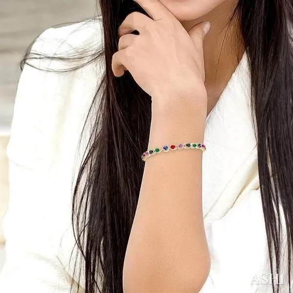 4X3 MM & 4 MM Mixed Shape Gemstone and 1 1/3 Ctw Round Cut Halo Diamond Bracelet in 14K Yellow Gold Adler's Diamonds Saint Louis, MO