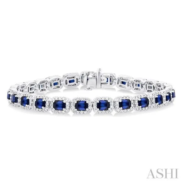 4X3 MM Emerald Cut Sapphire and 2 1/5 Ctw Round Cut Diamond Halo Precious Bracelet in 14K White Gold Image 2 Adler's Diamonds Saint Louis, MO