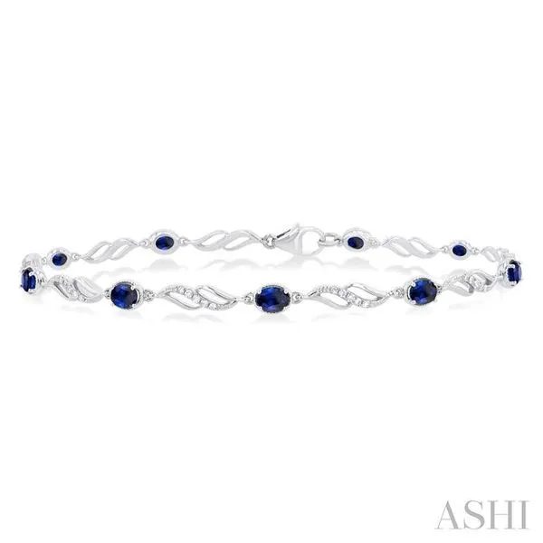 4X3 MM Oval Cut Sapphire and 1/5 Ctw Round Cut Diamond Precious Eternity Link Tennis Bracelet in 10K White Gold Image 2 Adler's Diamonds Saint Louis, MO