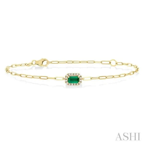 5x3 MM Emerald and 1/20 Ctw Single Cut Diamond Halo Precious Paperclip Bracelet in 10K Yellow Gold Image 2 Adler's Diamonds Saint Louis, MO