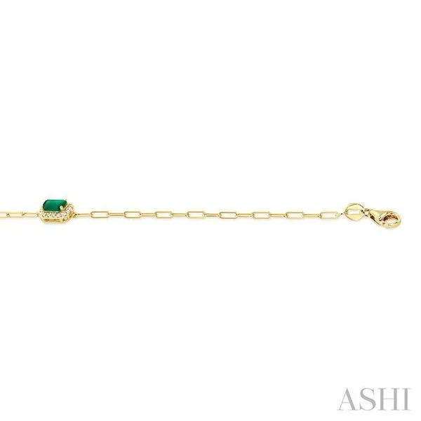 5x3 MM Emerald and 1/20 Ctw Single Cut Diamond Halo Precious Paperclip Bracelet in 10K Yellow Gold Image 3 Adler's Diamonds Saint Louis, MO