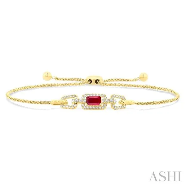 5X3 MM Octagon Shape Ruby and 1/4 Ctw Round Cut Diamond Precious Bracelet in 14K Yellow Gold Image 2 Adler's Diamonds Saint Louis, MO