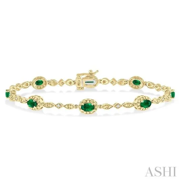 5x3 MM Oval Cut Emerald and 1/20 Ctw Single Cut Diamond Bracelet in 10K Yellow Gold Image 2 Adler's Diamonds Saint Louis, MO