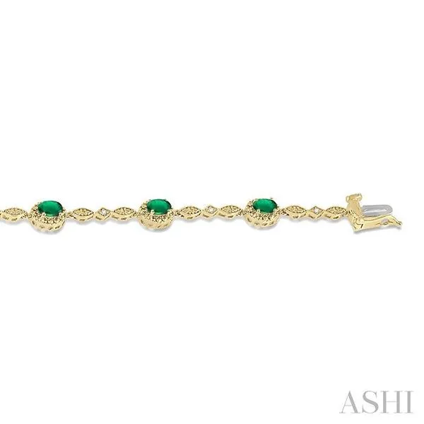 5x3 MM Oval Cut Emerald and 1/20 Ctw Single Cut Diamond Bracelet in 10K Yellow Gold Image 3 Adler's Diamonds Saint Louis, MO