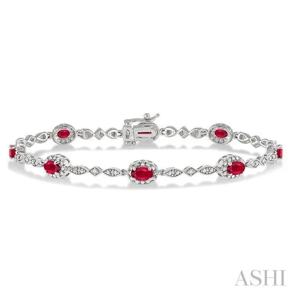 5x3 MM Oval Cut Ruby and 1/20 Ctw Single Cut Diamond Bracelet in 14K White Gold Image 2 Adler's Diamonds Saint Louis, MO