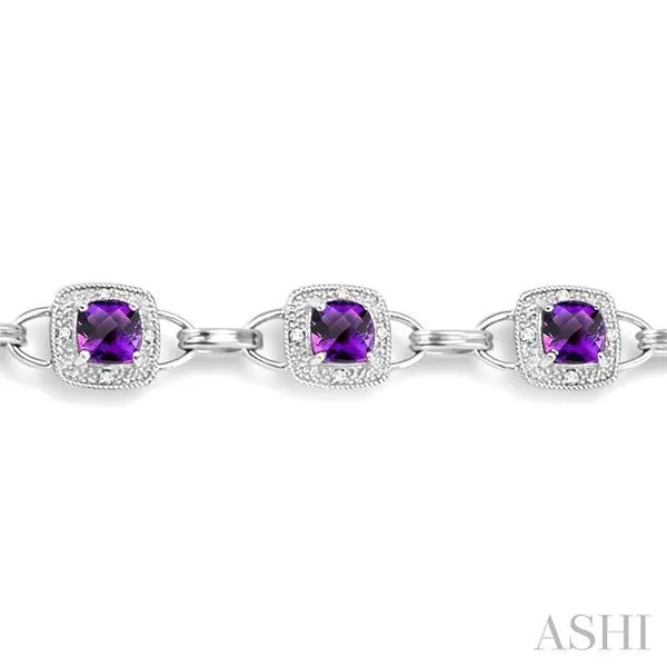 5x5 MM Cushion Shape Amethyst and 1/6 Ctw Single Cut Diamond Bracelet in 10K White Gold Image 4 Adler's Diamonds Saint Louis, MO