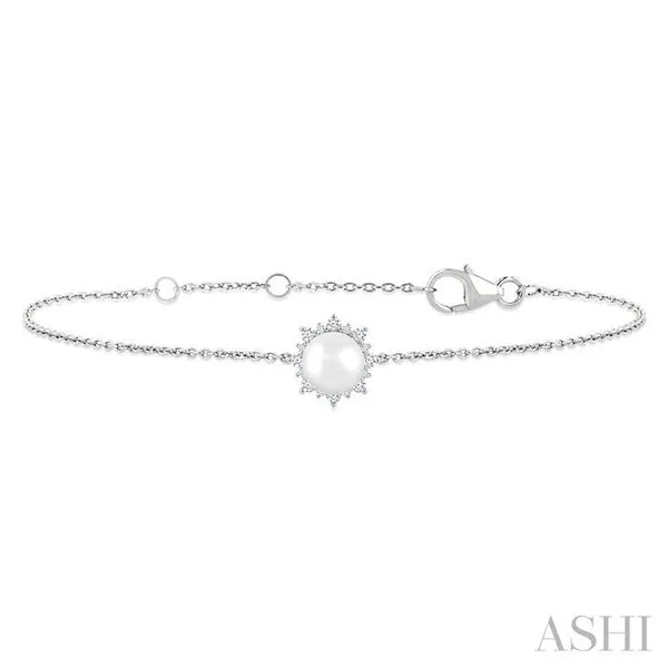 6 MM Round Shape Cultured Pearl and 1/10 Ctw Petite Round Cut Diamond Halo Bracelet in 10K White Gold Adler's Diamonds Saint Louis, MO