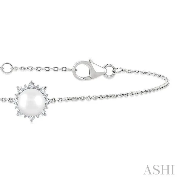 6 MM Round Shape Cultured Pearl and 1/10 Ctw Petite Round Cut Diamond Halo Bracelet in 10K White Gold Image 2 Adler's Diamonds Saint Louis, MO