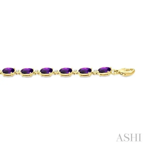 6X4 MM Oval Cut Amethyst and 1/6 Ctw Round Cut Diamond Semi-Precious Tennis Bracelet in 10K Yellow Gold Image 3 Adler's Diamonds Saint Louis, MO
