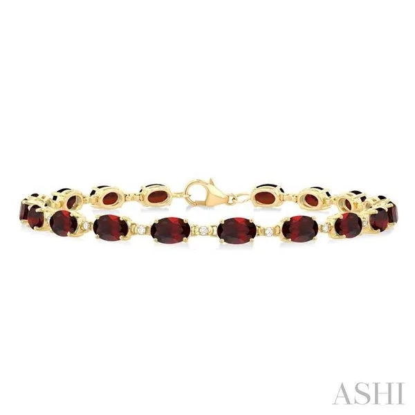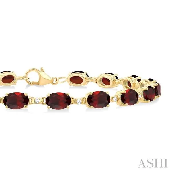 6X4 MM Oval Cut Garnet and 1/6 Ctw Round Cut Diamond Semi-Precious Tennis Bracelet in 10K Yellow Gold Image 2 Adler's Diamonds Saint Louis, MO