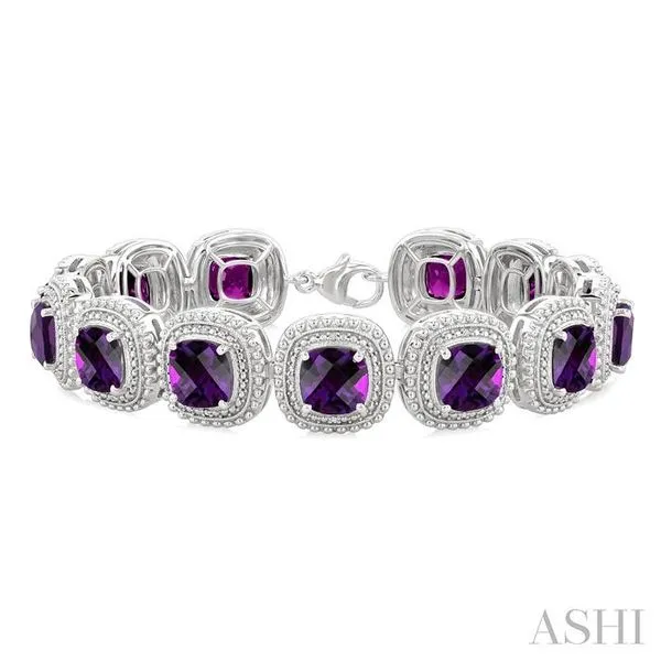 7 MM Oval Shape Amethyst and 1/10 Ctw Round Cut Diamond Semi-Precious Bracelet in Sterling Silver Image 2 Adler's Diamonds Saint Louis, MO
