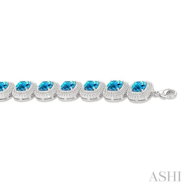 7 MM Oval Shape Blue Topaz and 1/10 Ctw Round Cut Diamond Semi-Precious Bracelet in Sterling Silver Image 3 Adler's Diamonds Saint Louis, MO