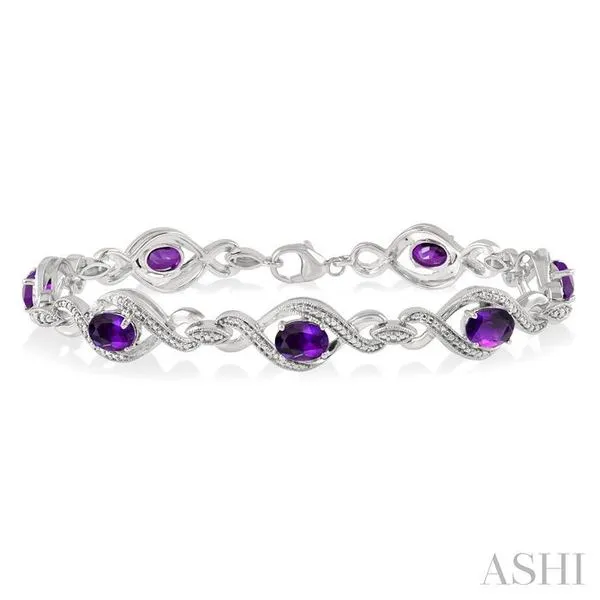 7x5 MM Oval Cut Amethyst and 1/10 Ctw Round Cut Diamond Semi-Precious Bracelet in Sterling Silver Image 4 Adler's Diamonds Saint Louis, MO