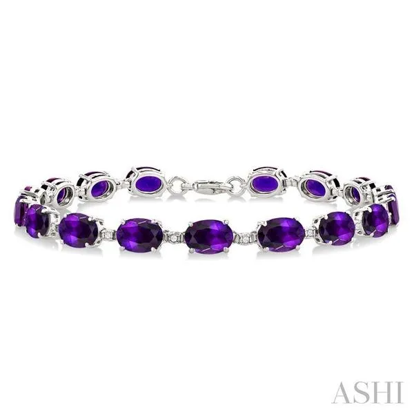 7X5 MM Oval Shape Amethyst and 1/10 Ctw Round Cut Diamond Semi-Precious Bracelet in Sterling Silver Image 2 Adler's Diamonds Saint Louis, MO